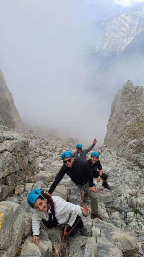 The climb to Mytikas peak at an altitude of 2918 meters will take place on Saturday afternoon or on Sunday morning depending on the weather conditions and the mood of the team. The ascent will be done with the use of appropriate climbing safety equipment (helmet, climbing zone, rope) and the help of experienced guides and climbing instructors. The ascent to the top will take about 3 hours.